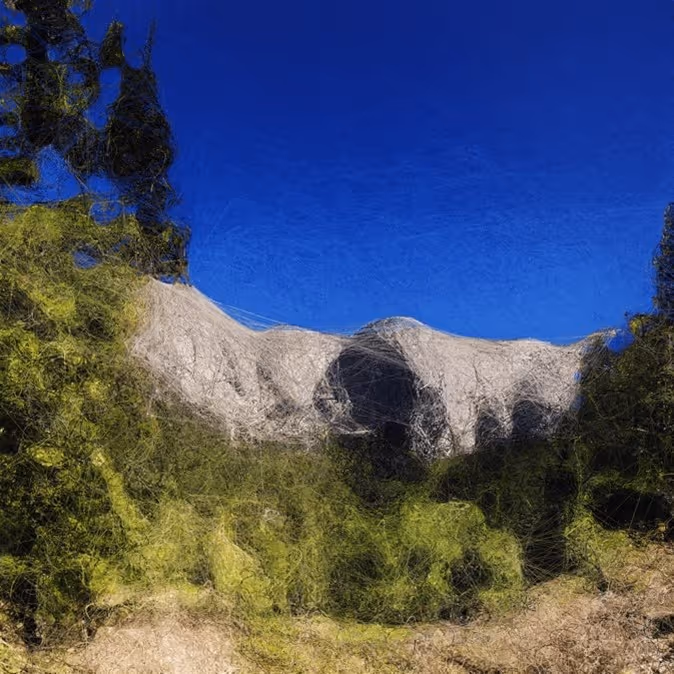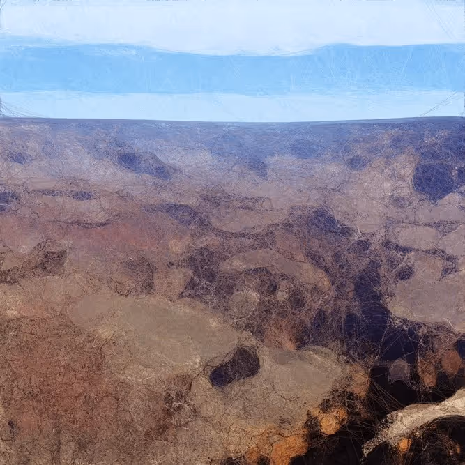 Despite the sophisticated, somewhat esoteric technology behind this series, the resulting data paintings are grounded in natural forms, earthy tones, and a tactile all-over surface texture. The raw data a t the heart of the project is a set of 200 million photographs of landscapes from around the world, including from all the national parks in the United States. Indeed, the series is far more figurative than much of Anadol’s work. Whereas some data paintings in the series are relatively abstract, others are such literal representations of the source photographs that the landscapes they depict are recognizable. For example, one of the data paintings in Hivemind’s Digital Culture Fund collection resembles the Grand Canyon, while another loosely resembles Mount Rushmore (figures 2 and 3). Furthermore, the web-like pattern of fine lines across the data paintings recalls the visual effect of sketching, incising, or etching in traditional art. In this way, the Synthetic Dreams series exists at the nexus of familiar materiality, cutting-edge technology, and the unfettered natural world. In Anadol’s words, this nuanced body of work pays “homage to the Earth's unbounded poetic sublimity.” The themes Anadol explored in this series—the dreamscape, the sublimity of nature, the creative potential of technology, and the changing nature of perception in the 21st century—are the same themes that play out in his later work, such as Winds of Yawanawá (2023), and that continue to take shape in his work today.