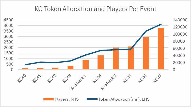 Since the app went live in mid-2023, KC’s KPIs have shown strong initial momentum as shown below. Recent events have seen $3-4m staked (over 10% of circulating supply) and the Dubai event in March had over 50 million views, according to the team.